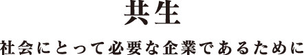 私たちは、「共生」の心を大切にグループ構成員全員が「共に生きる」を会社の経営理念として、社会にとって必要な企業であり続けます。